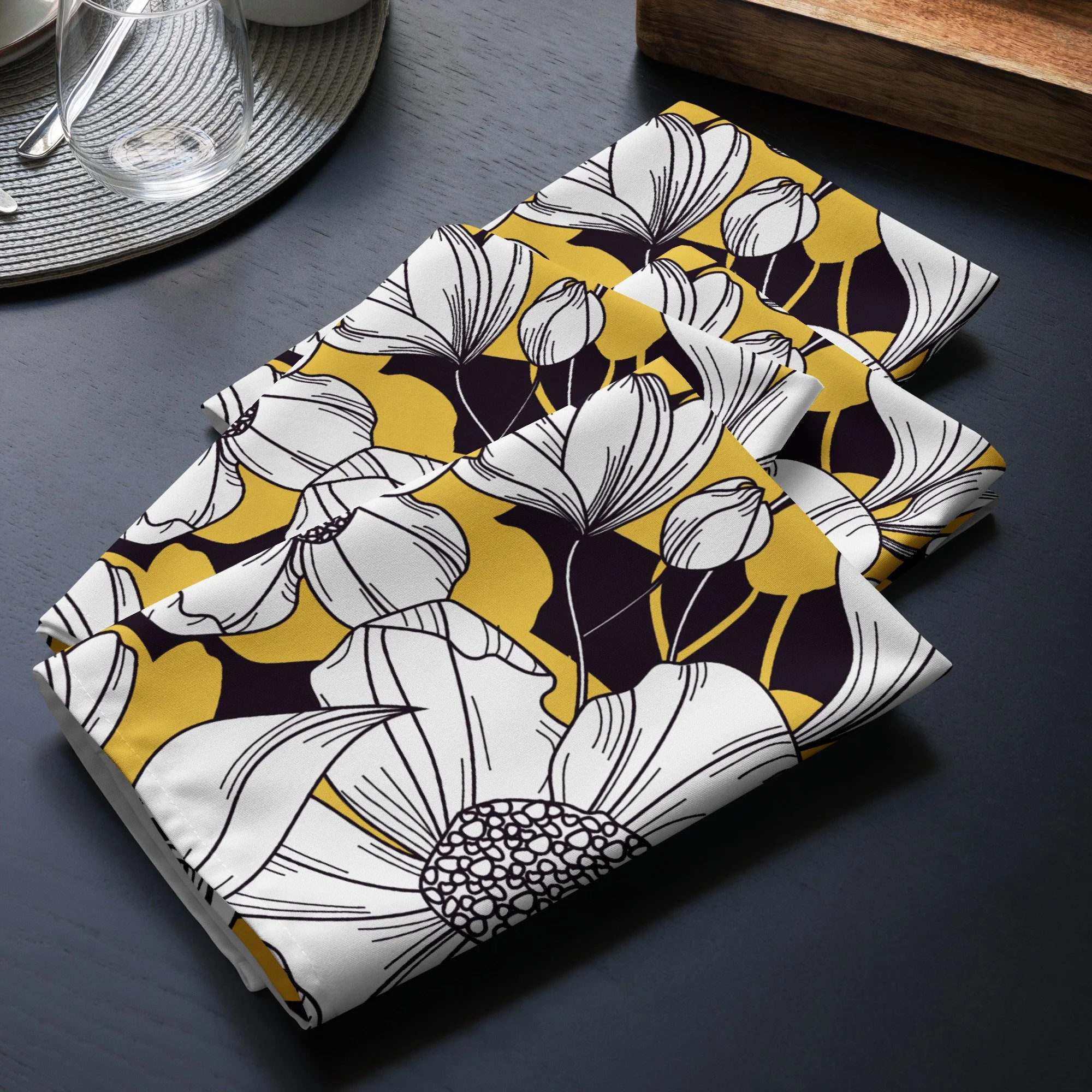 Revamp your dining experience with our custom cloth napkin set. Every pack comes with 4 soft, lightweight, and pliable napkins, each with a unique design for that personal touch. Great for special dinners or everyday use, these napkins add a dash of design and comfort to any mealtime.