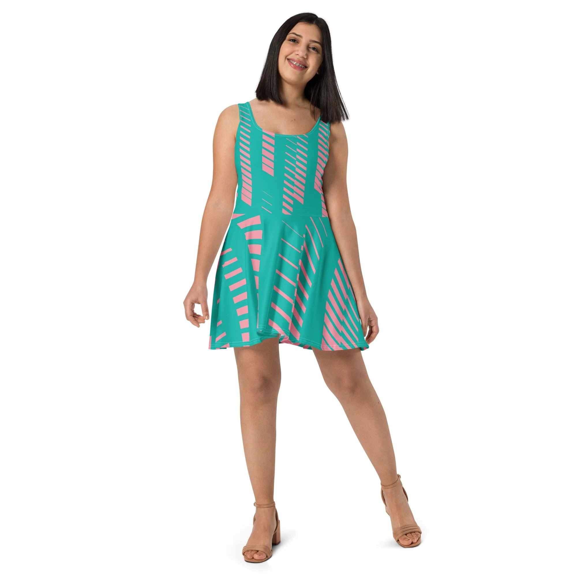 Dress to impress with this sleeveless skater dress! The soft fabric and flared skirt give it an elegant twist that brings out the intricate design with a beautiful vibrancy.